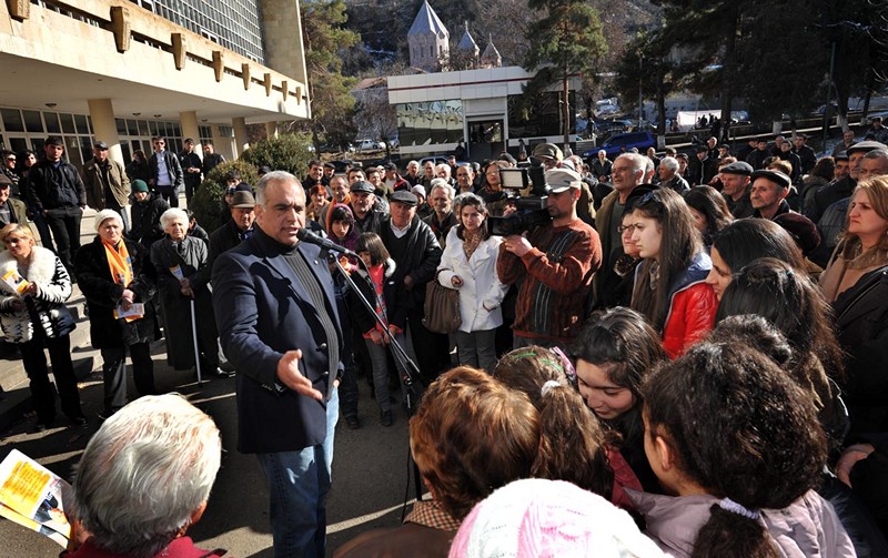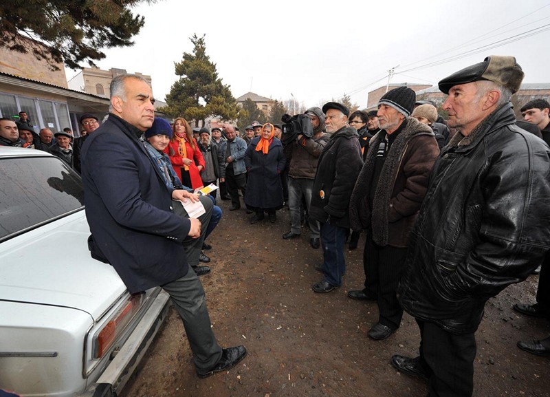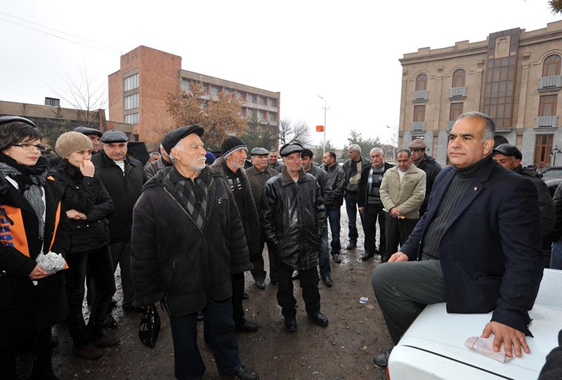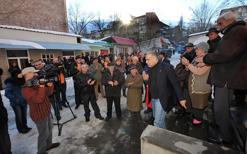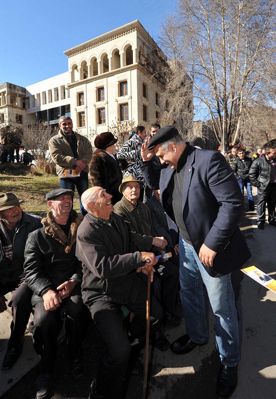 Ելույթ ունենալով Կապանի կենտրոնական հրապարակում հավաքվաց հարյուրավոր կապանցիների առջեւ, նա ասաց. «Հայաստանի շատ մարզերում առկա վախի մթնոլորտի համար պատասխանատու են դե-ֆակտո նախագահը եւ նրա կողմից նշանակված մարզպետները: Այդ իսկ պատճառով մենք ասում ենք, որ Սերժի Հայաստանը պետք է փոխարինվի նոր Հայաստանով, որի քաղաքացին իրեն լիիրավ տեր կզգա սեփական հայրենիքում եւ որի իրավունքները հարգված կլինեն, իսկ տեղական չինովնիկները` մարզպետ, քաղաքապետ, թե գյուղապետ, ոչ թե իրենց կպահեն տիրակալների նման, այլ կլինեն ձեր բոլորի ծառաները: Դա ձեզանից է կախված, եթե դուք փետրվարի 18-ին մեր պետության պատմության մեջ առաջին անգամ ընտրական հեղափոխություն իրականացնեք»: Նա նաեւ անդրադարձավ հանքարդյունաբերության խնդիրներին՝ անթույլատրելի համարելով մի խումբ մարդկանց կողմից համազգային սեփականությունը հանդիսացող հանքերի մասնավորեցումը եւ անխնա շահագործումը՝ ի վնաս շրջակա միջավայրի:
