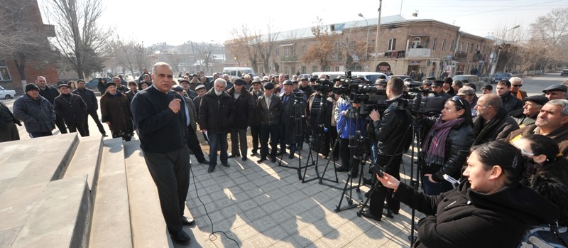 Երեւան: ՀՀ նախագահի թեկնածու Րաֆֆի Հովհաննիսյանն այսօր Արարատի մարզում էր եւ իր նախընտրական քարոզարշավը սկսեց հենց մարզկենտրոնից, որտեղ բավական հոծ բազմություն էր հավաքվել՝ ծանոթանալու թեկնածուի ծրագրի սոցիալական հատվածի հիմնադրույթներին: