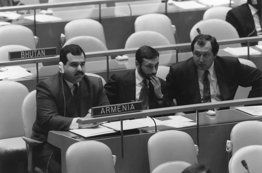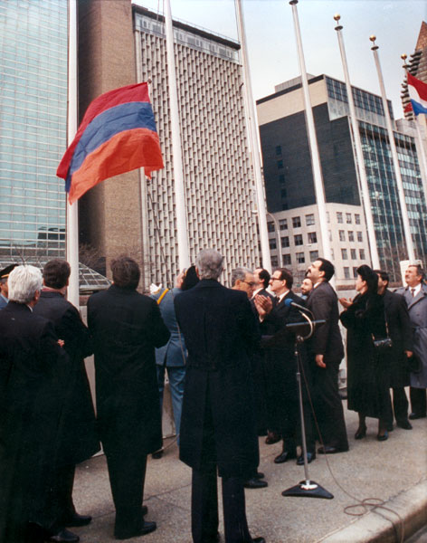 «Կարծես երեկ էր, բայց արդեն 25 տարի է անցել պատմական այն օրվանից, երբ ՄԱԿ-ի կենտրոնակայանի գրասենյակի առջեւ ծածանվեց Հայոց եռագույնը: Քիչ է այդ օրը պատմական անվանելը: Այն ոչ միայն մեծ բերկրանքի, արժանապատվության ու հպարտության, այլեւ պարտքի ու պատասխանատվության օր էր: